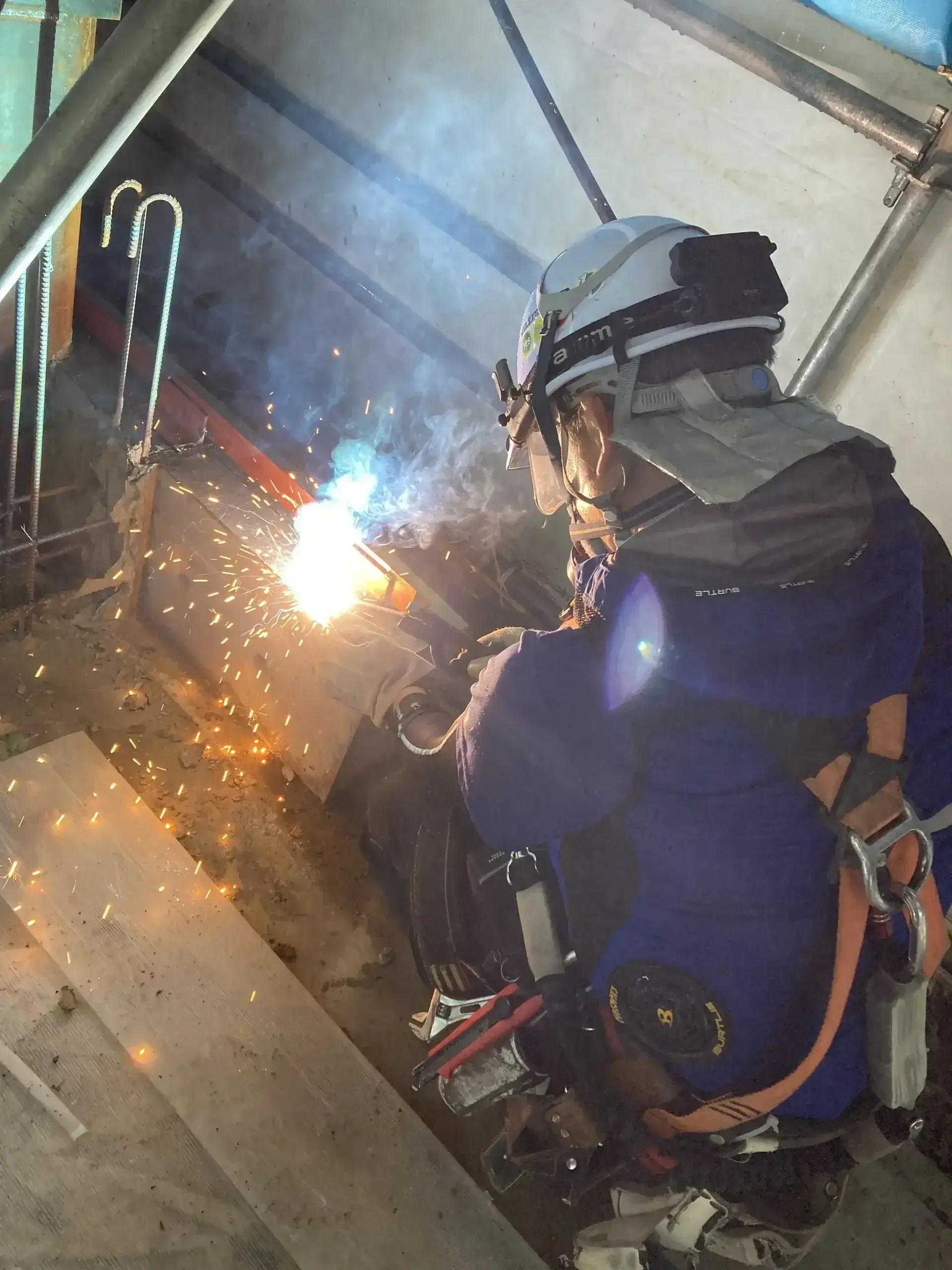 ALCパネルの取り付けは、緻密な計算と溶接技術が必要です。